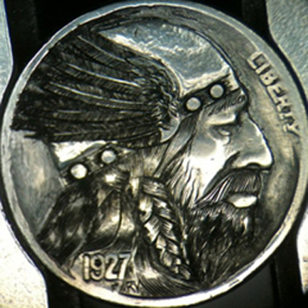 Hobo Nickels are a form of folk art from the early part of the 20th century. The artist re-cuts a coin, usually a Buffalo nickel. Originally given as a token of appreciation for a hot meal or a warm dry place to sleep, they are now collected for their artistic merit as well. Early examples were cut with impromptu tools. Engravers recently have rediscovered this form of folk art and use it as a great exercise of modern engraving techniques.